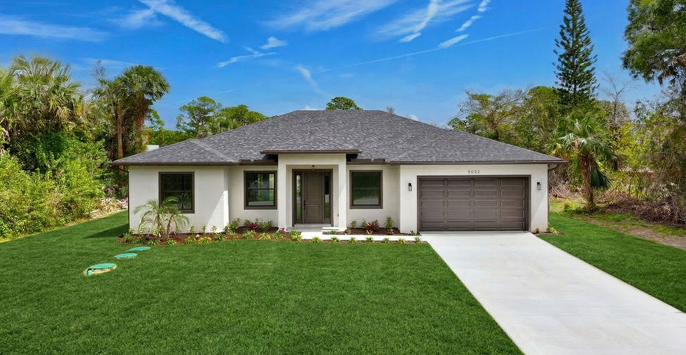 From the moment you arrive, the expansive paver driveway sets the tone — offering both durability and upscale charm. The home’s crisp light exterior is beautifully contrasted by deep charcoal trim, a dark architectural shingle roof, and a striking black garage door that creates a sophisticated, contemporary look.